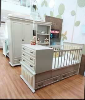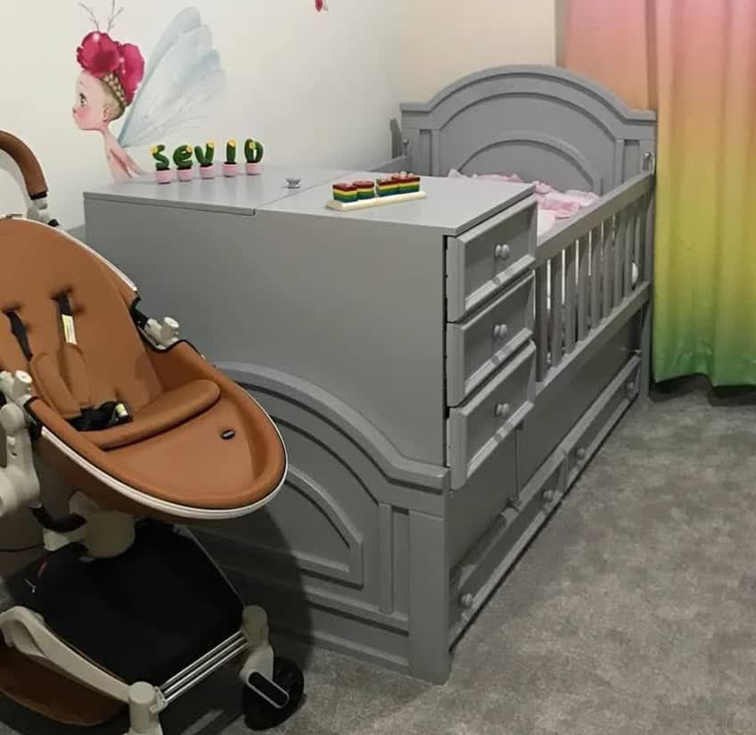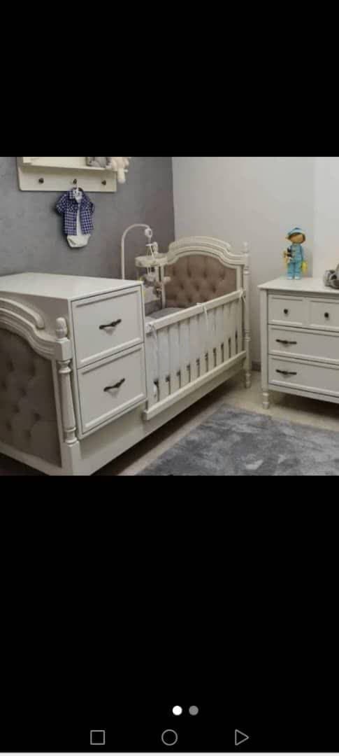تخت بچه: یکی از مهمترین آیتمها در سیسمونی است. تخت باید محکم، ایمن و با استانداردهای روز ساخته شده باشد.