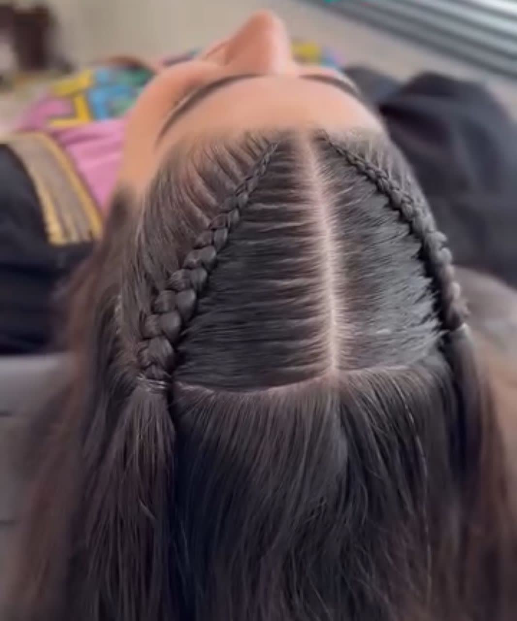 بافت فرانسوی (French Braid): در این نوع بافت، موها از بالای سر به تدریج بافته میشوند و به پایین ادامه مییابند. این مدل کلاسیک و شیک است و میتوان آن را به شکلهای مختلف انجام داد.