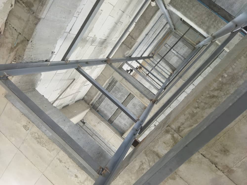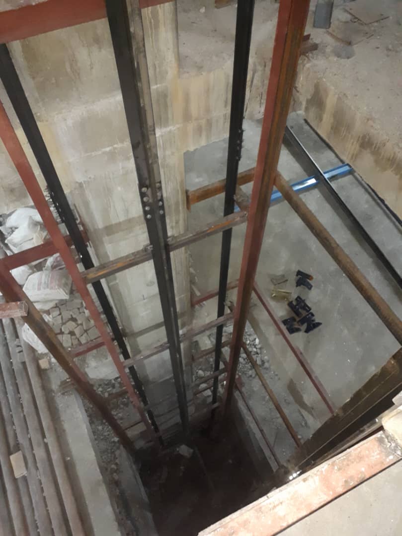 ۱. آمادهسازی محل نصب: ابتدا چاهک آسانسور آماده و تجهیزات موردنیاز به محل پروژه منتقل میشود.