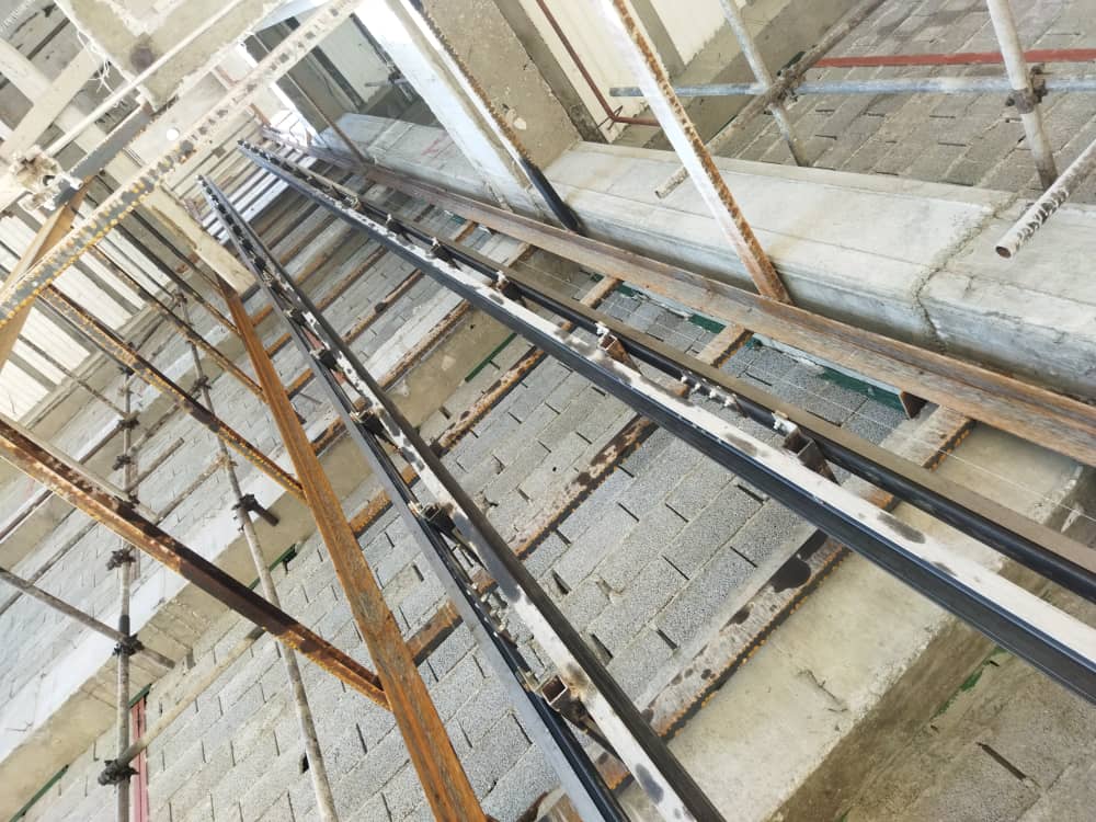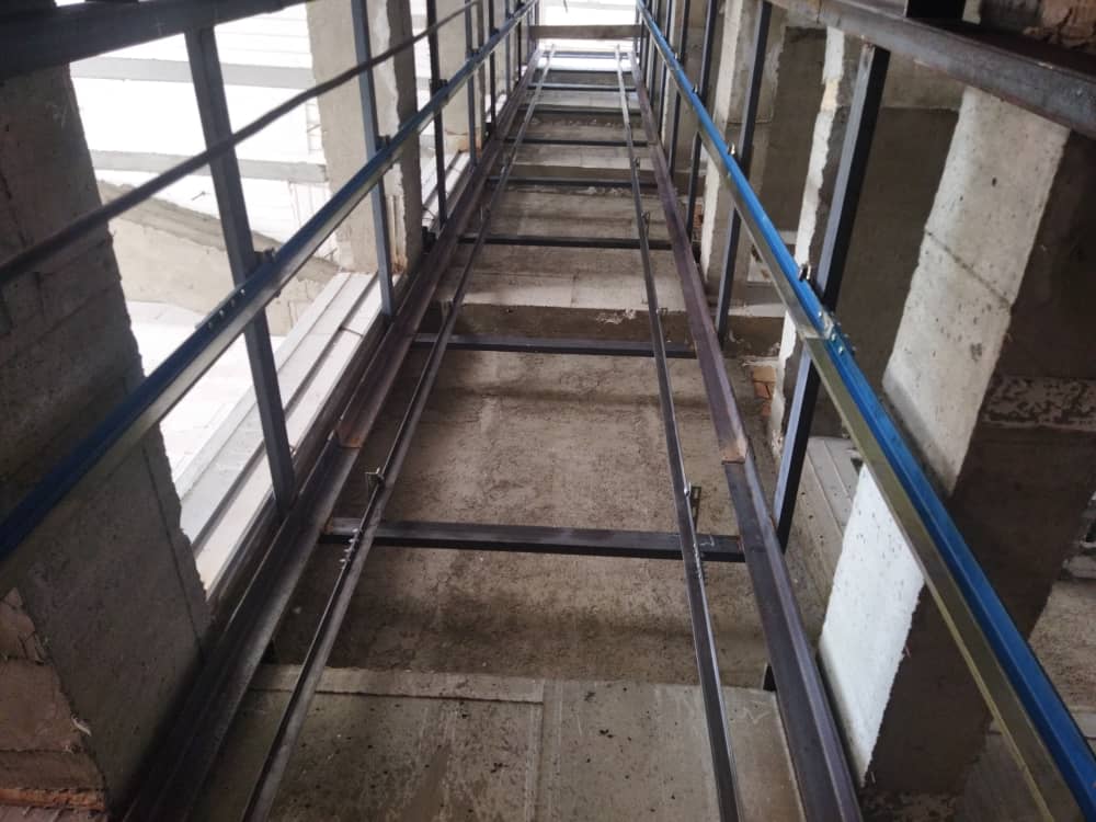 2. نصب ریلها و موتور: ریلهای راهنما و موتور اصلی آسانسور با دقت نصب میشوند تا حرکت آسانسور کاملاً روان باشد.