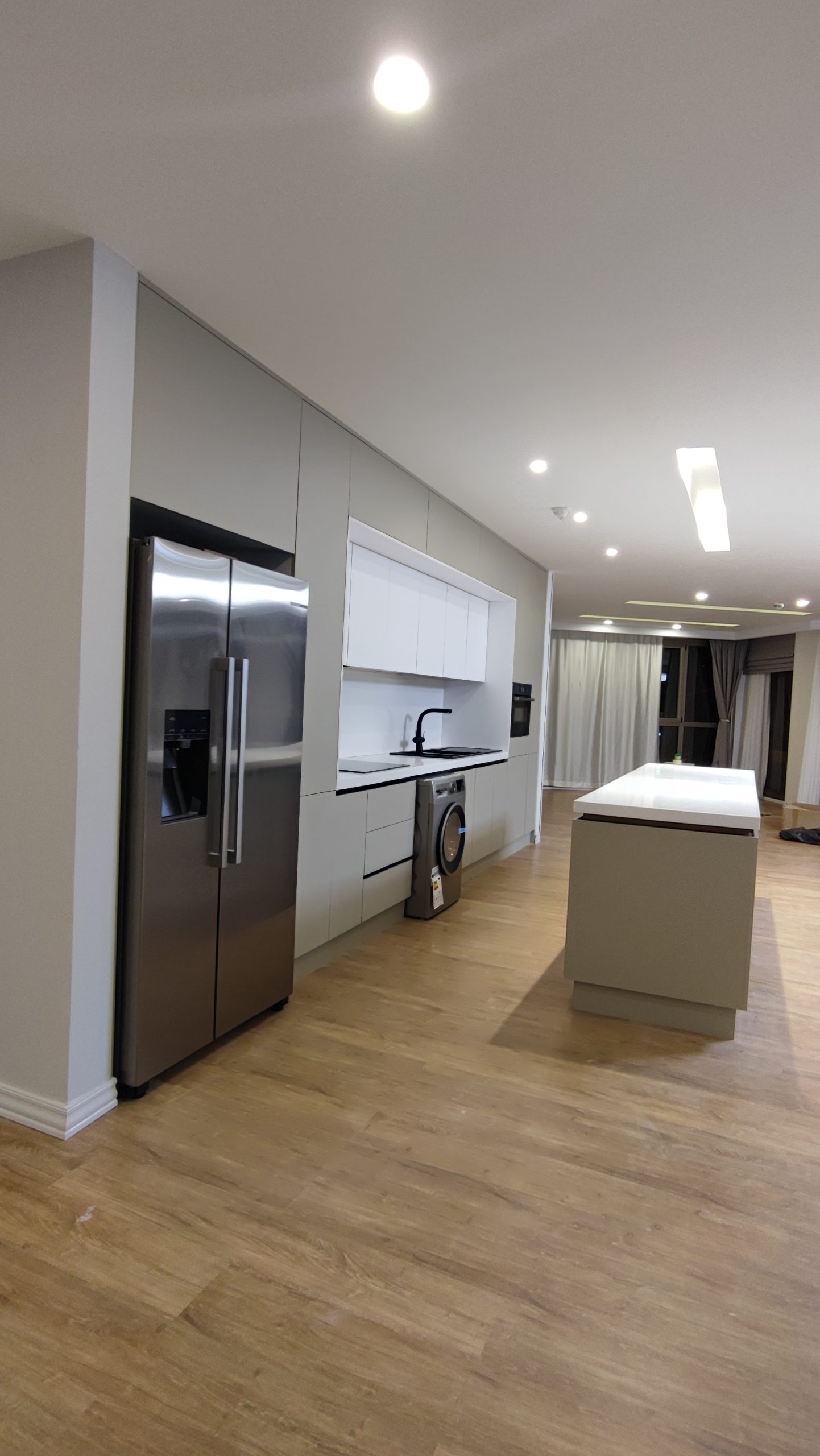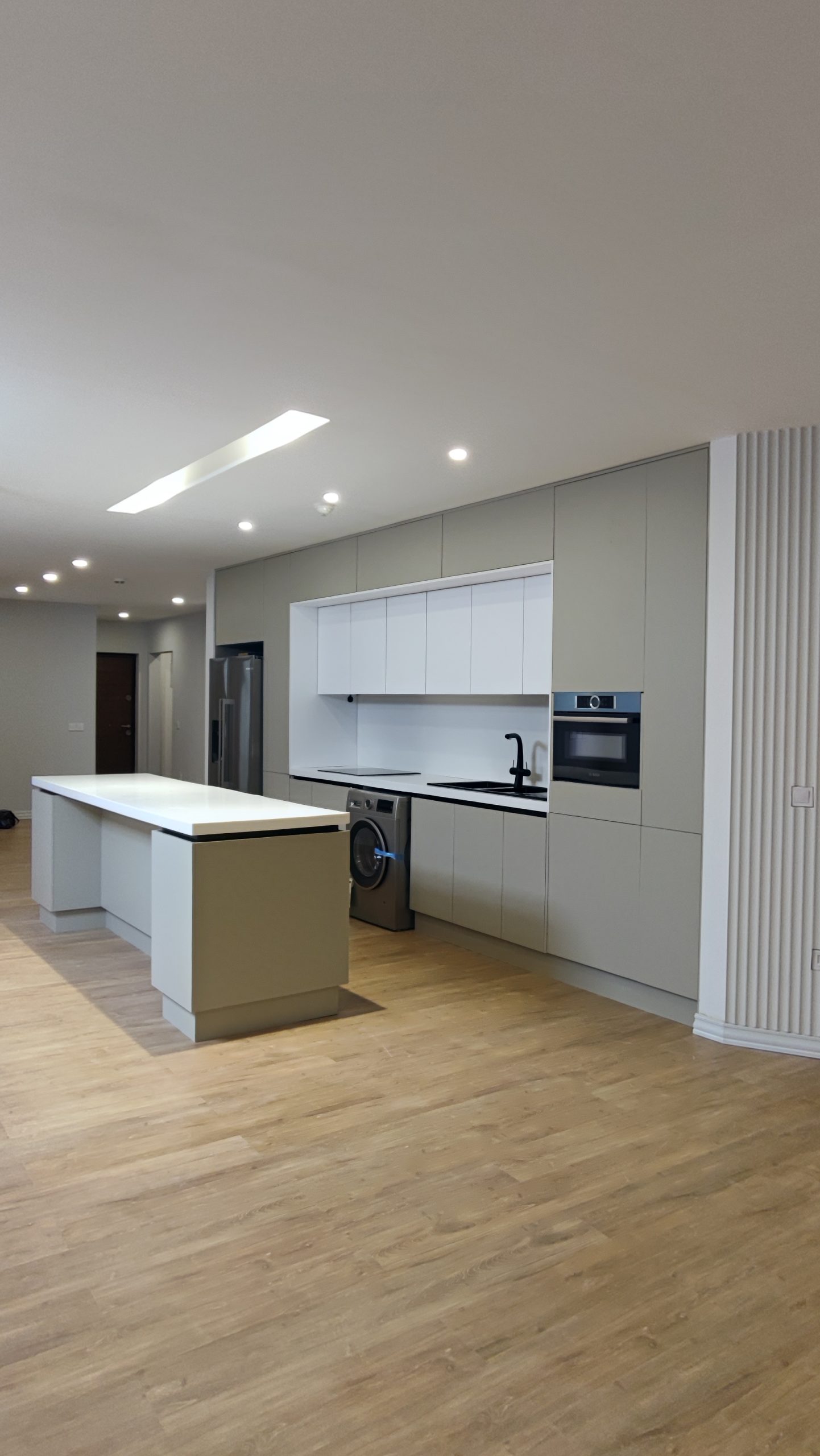 فضای کوچک؟ سبک مدرن روشن با دستگیره مخفی و شیشههای براق فضا را بزرگتر میکند.