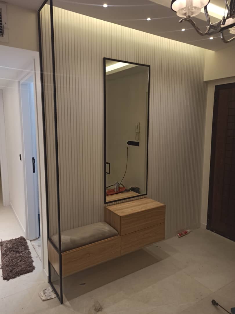 دیوارهای دکوراتیو، درهای مخفی، قفسه کتابخانه، میز کار خانگی، نرده و کنسول ورودی.