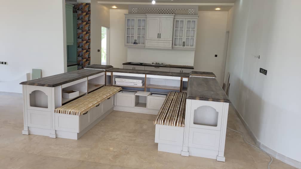 تمامی کابینتها با استفاده از ورق MDF ترک، ایرانی مرغوب، یراقآلات بلوم، فانتونی، و هفله آلمان تولید میشوند.