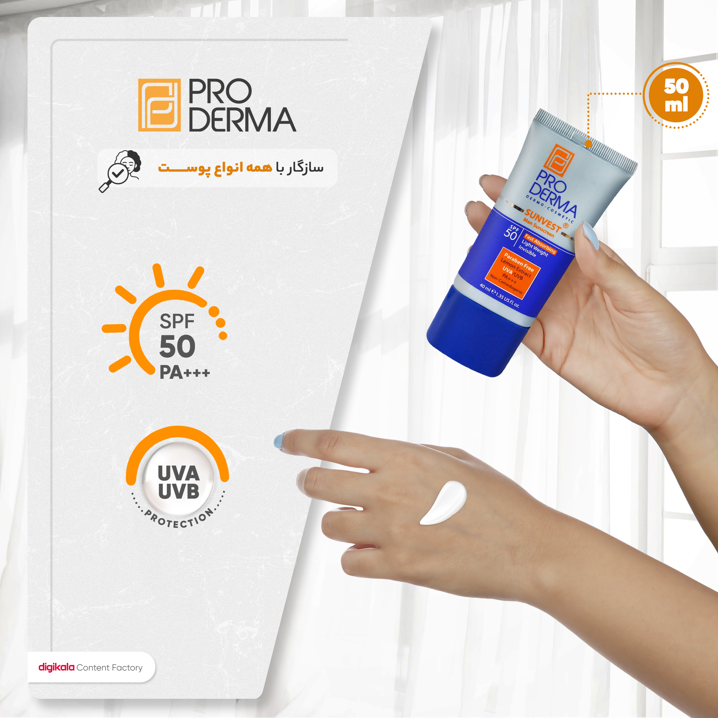مراقبت پوست کرم ضد آفتاب بدون رنگ مخصوص آقایان پرودرما مدل SPF50 محافظ UVA ،UVB و +++PA، مرطوبکننده، مناسب انواع پوست حجم 40 میلیلیتر