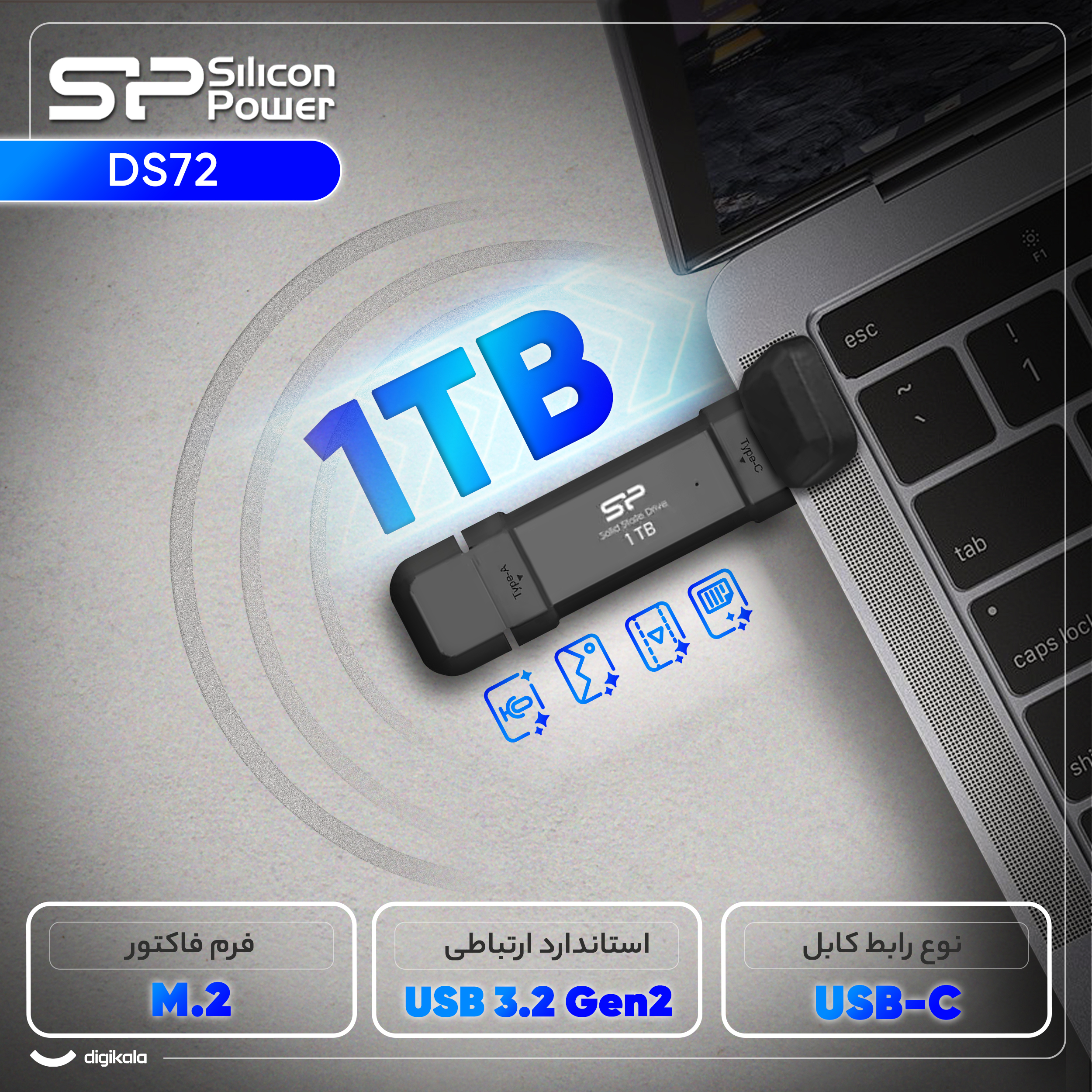 بهترین قیمت اس اس دی اکسترنال سیلیکون پاور مدل DS72 ظرفیت 1 ترابایت رابط USB 3.2 Gen2 ارسال سراسر ایران