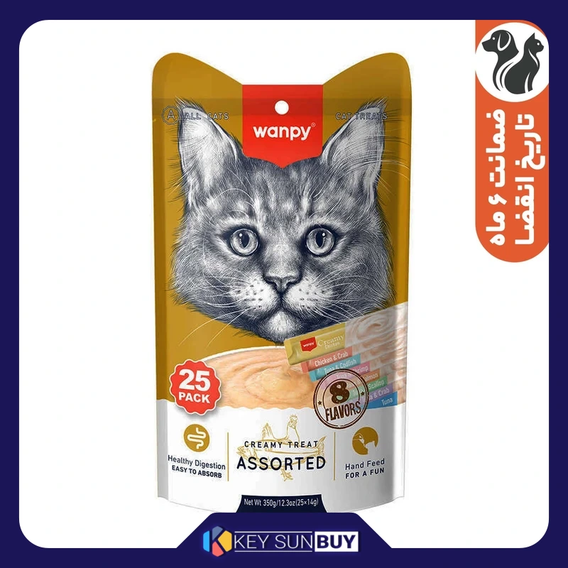 بهترین قیمت بستنی گربه ونپی مدل 8 طعم وزن 350 گرم بسته 25 عددی ارسال سراسر ایران