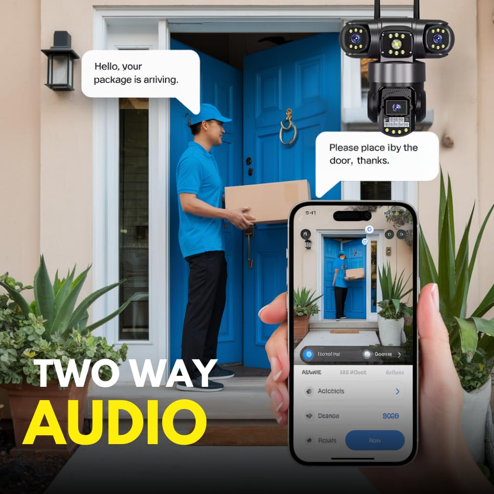 دوربین سیم کارت خور سه لنز می تواند جایگزین بسیار مناسبی برای دوربین های کابلی باشد . چرا که با نصب یک دوربین می توانید بصورت همزمان 3 عدد تصویر و سه گوشه محیط خودتان را مشاهده نمایید . این دوربین دارای دزدگیر داخلی می باشد که به با فعال کردن آن و به محض حرکت از جلوی دوربین آلارم دستگاه فعال و آژیر آن به صدا در می آید . همچنین قابلیت های دید در شب رنگی ، مکالمه دو طرفه ، چرخش به تمام زوایا در این دوربین مانند سایر دوربین ها وجود دارد . با گذاشتن یک رم 128 گیگ می توانید تصاویر محیط این دوربین مداربسته را به مدت حداکثر 25 روز ذخیره نمایید . قابلیت مکالمه دو طرفه به این صورت عمل می کند که می توانید از طریق گوشی با محیط خودتان صحبت کنید . با نصب اپلیکیشن می توانید از هر کجای دنیا که هستید کنترل این دوربین را بر عهده داشته باشید و به هر سمتی که می خواهید این دوربین را بچرخوانید . همچنین دزدگیر و مکالمه دو طرفه را می توانید از طریق گوشی خودتان فعالسازی کنید . دید در شب رنگی با وضوح بسیار بالا این امکان را به شما می دهد تا در تاریکی مطلق تصاویر با کیفیت رنگی بالا دریافت کنید .