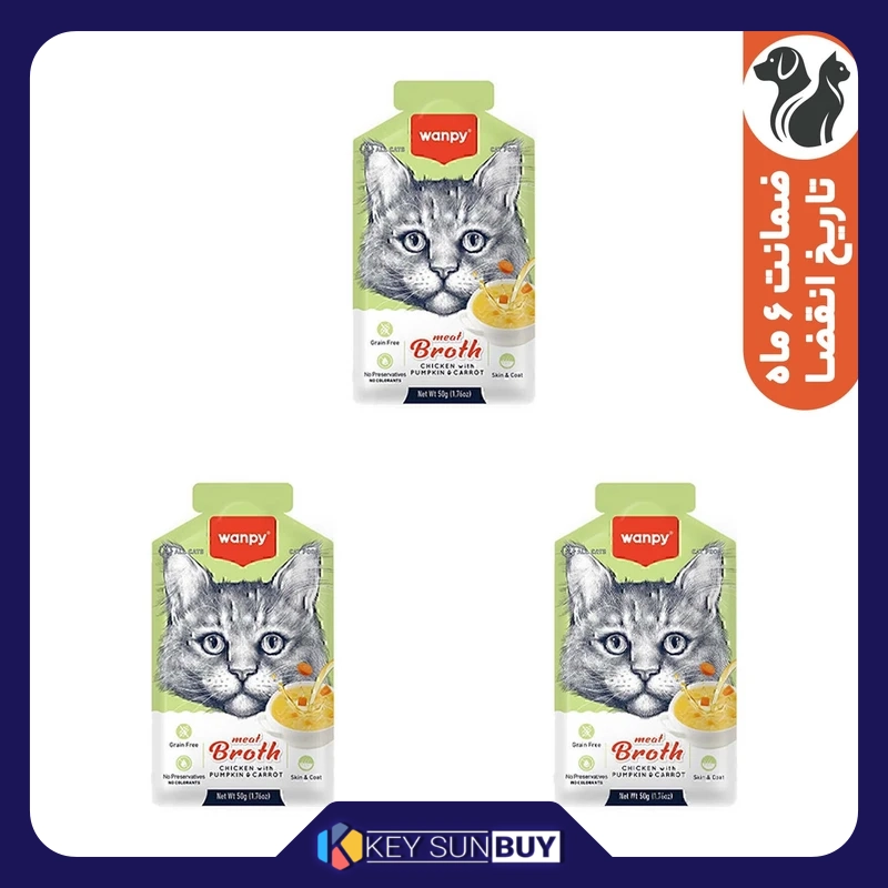 بهترین قیمت سوپ گربه ونپی مدل Meat Broth با طعم مرغ، کدوحلوایی و هویج وزن 150 گرم بسته 3 عددی ارسال سراسر ایران