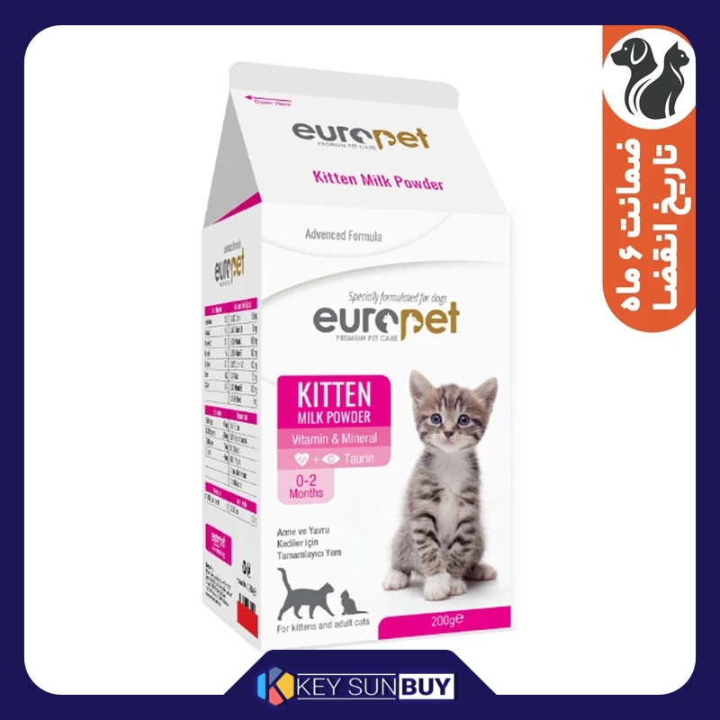 بهترین قیمت شیر خشک گربه یوروپت مدل کیتن وزن 200 گرم ارسال سراسر ایران