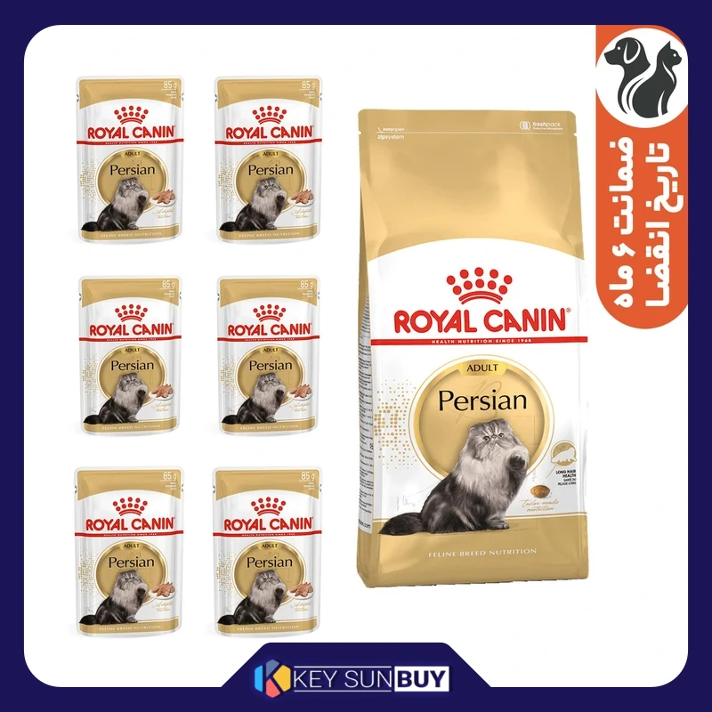 بهترین قیمت غذای خشک گربه رویال کنین مدل پرشین ادالت وزن 2500 گرم مجموعه 7 عددی به همراه پوچ گربه ارسال سراسر ایران