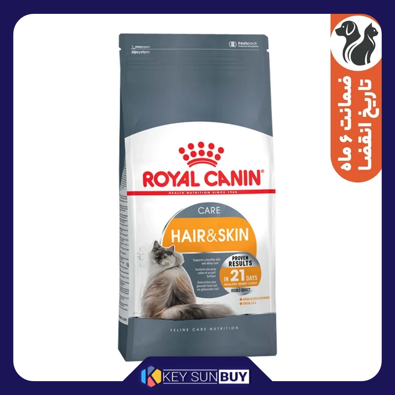 بهترین قیمت غذای خشک گربه رویال کنین مدل HAIR AND SKIN وزن 10 کیلوگرم ارسال سراسر ایران
