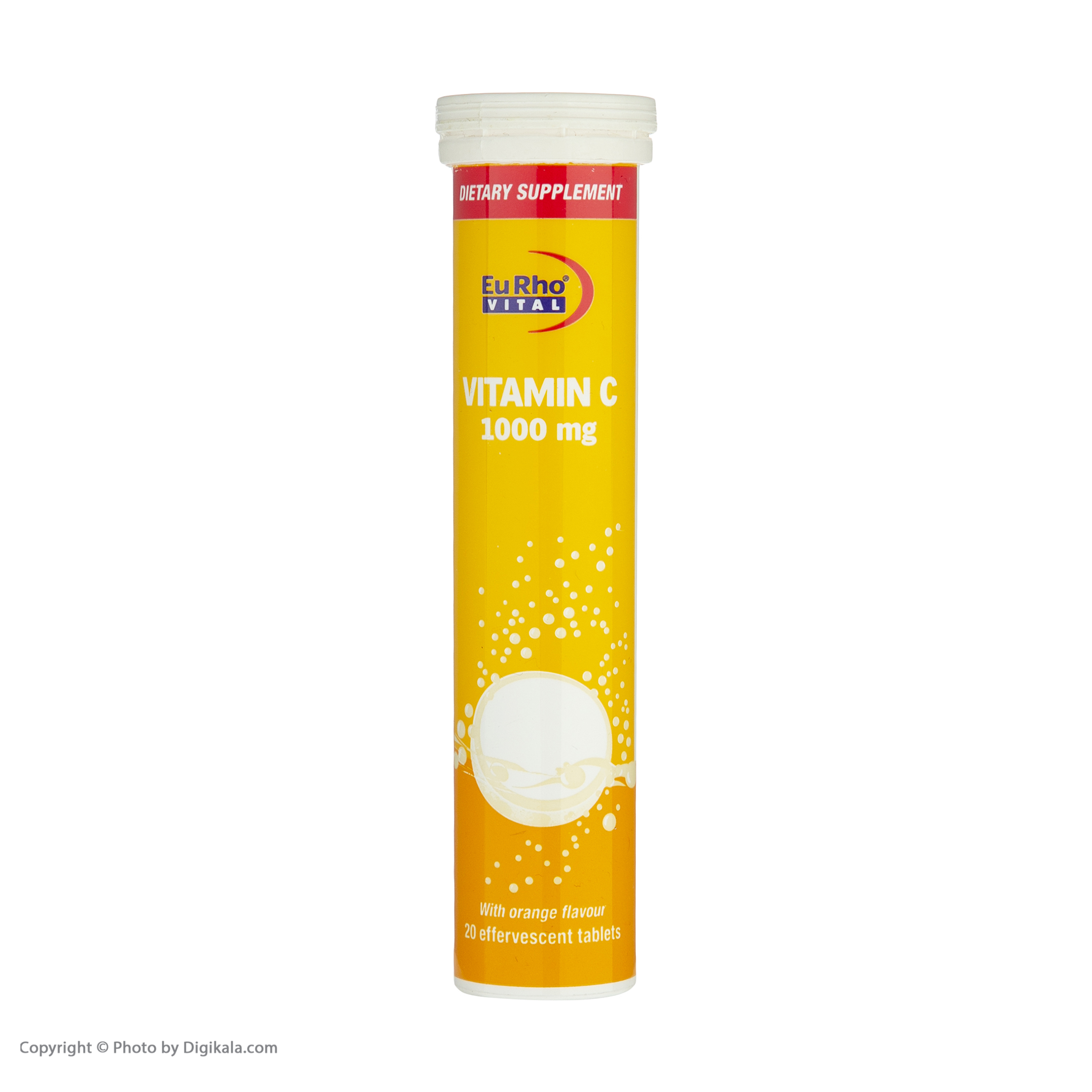 قرص جوشان ویتامین C 1000 میلی گرمی یوروویتال یک مکمل غذایی است که حاوی ویتامین C به فرم آسکوربات سدیم است. هر قرص جوشان می تواند نیاز روزانه بدن به این ویتامین را تأمین کند. همچنین می تواند به حفظ سلامت عمومی، تقویت سیستم ایمنی بدن، کاهش خستگی و بی حالی، کمک به تحریک ساخت کلاژن (یکی از اجزای اصلی بافت همبند)، کاهش خطر ابتلا به عفونت های تنفسی و سرماخوردگی، کاهش خطر ابتلا به سرطان های مختلف، کاهش خطر ابتلا به بیماری های قلبی عروقی، کاهش خطر پیر شدن زود رس پوست و کاهش خطر دژنراسیون ماکولار (آسیب به نقطة حساس نور در شبکیة) کمک می کند.