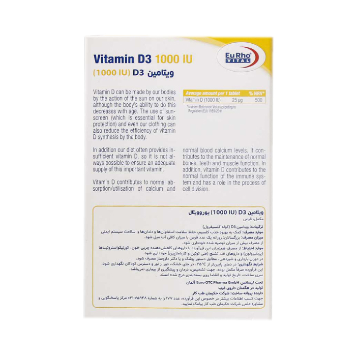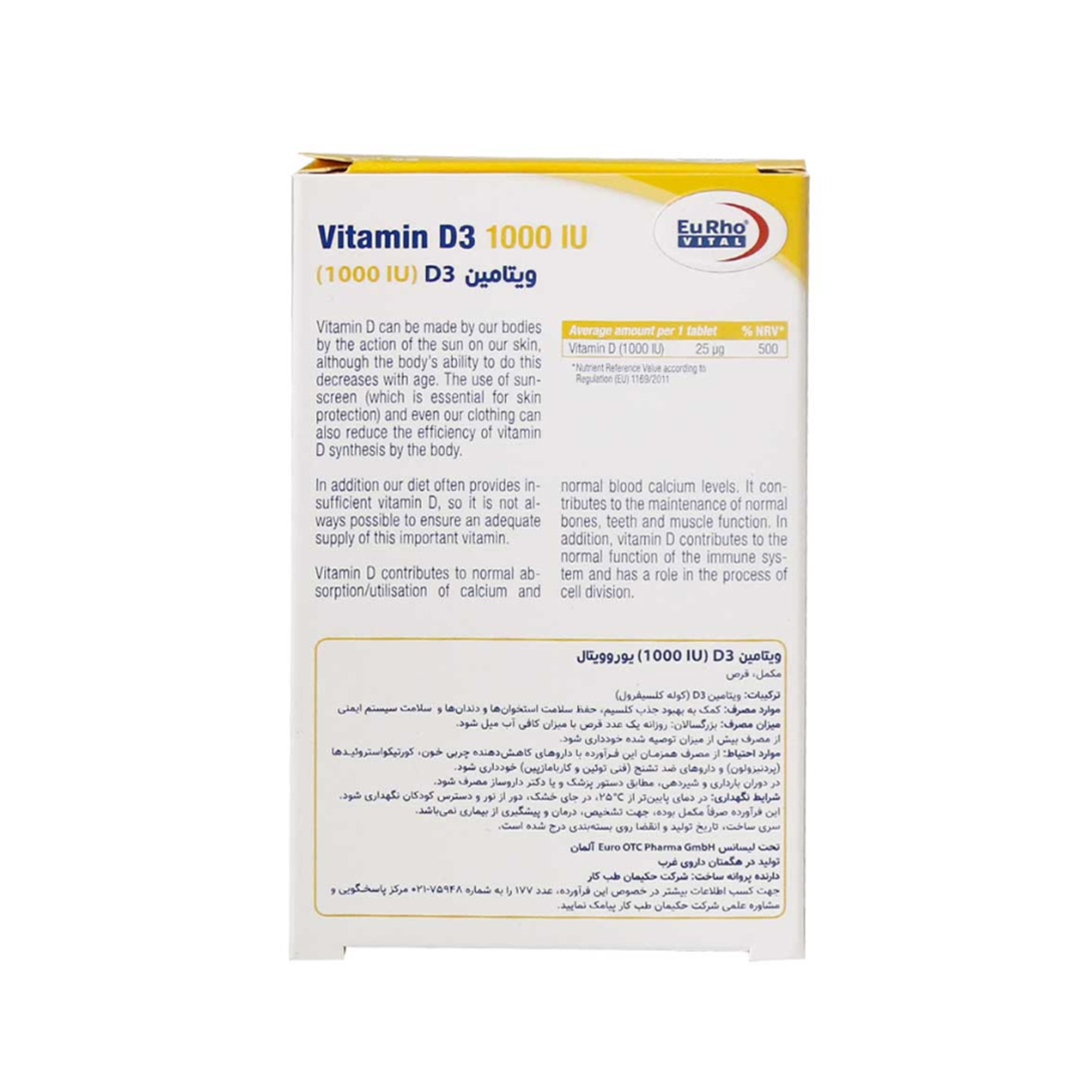 توضیحات قرص ویتامین D3-1000 واحدی یوروویتال بسته 60 عددی