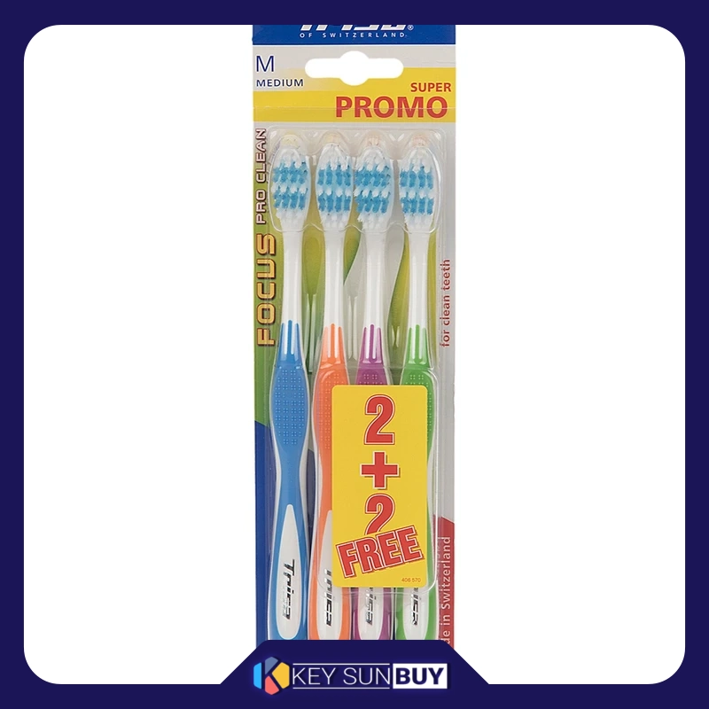 بهترین قیمت مسواک تریزا سری Super Promo مدل Focus Pro Clean با برس متوسط بسته 4 عددی ارسال سراسر ایران