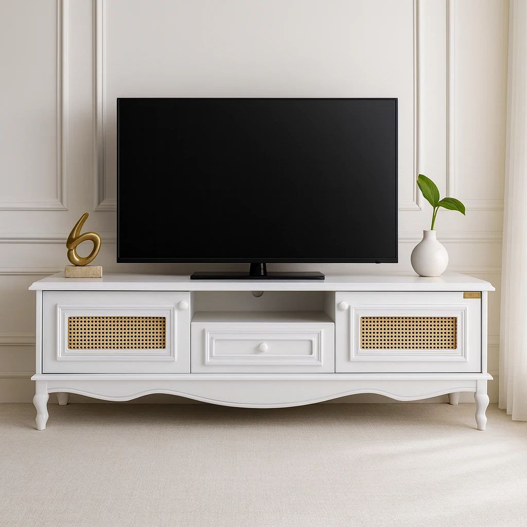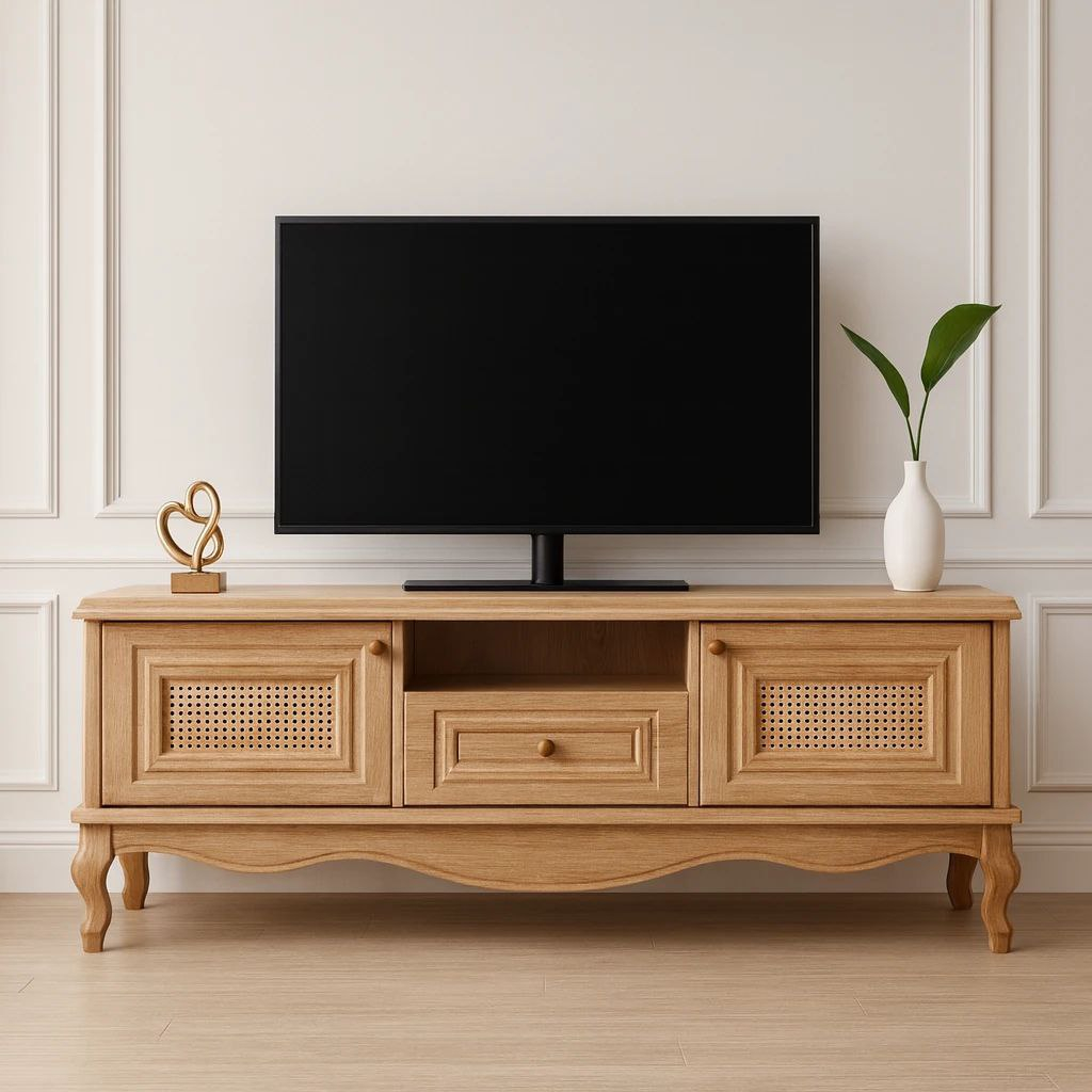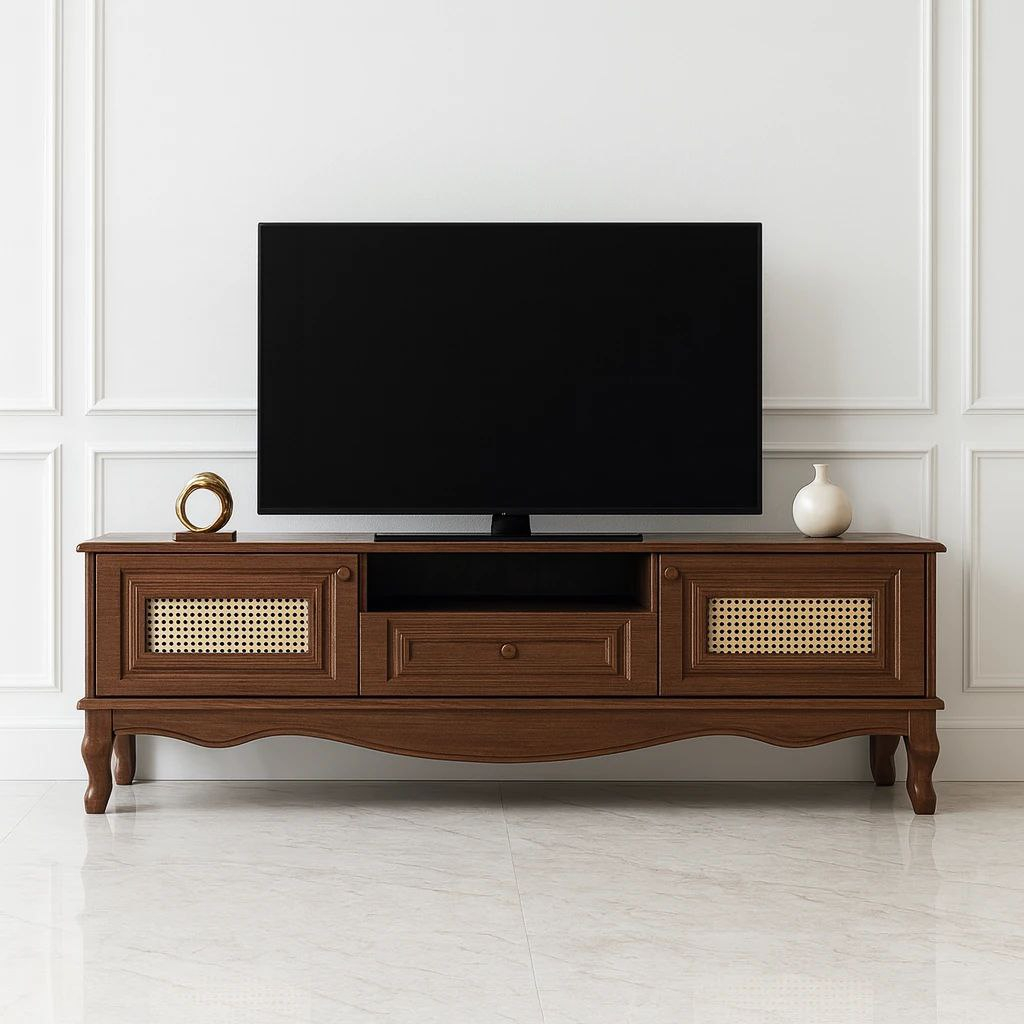 دربهای حصیری علاوه بر ایجاد ظاهری خاص و متفاوت، باعث عبور هوا شده و برای قرارگیری دستگاههای الکترونیکی گزینهای مناسب هستند. این طراحی ترکیبی از سبک مدرن و کلاسیک را ارائه میدهد.