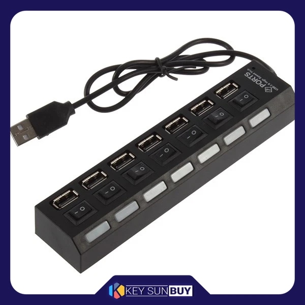 خیلی از کاربران کامپیوتر همیشه از تعداد محدود پورتهای USB کامپیوتر و یا لپتاپ خود شکایت دارند و برای وصل کردن یک وسیله به پورت USB مجبورند وسیله قبلی را جدا کنند. شما با استفاده از هاب USB میتوانید این اطمینان را داشته باشید که همزمان تمامی دستگاههای USB که شما به آنها احتیاج دارید به کامپیوتر یا لپتاپ متصل هستند. این هاب با 7 عدد پورت USB به شما امکان اتصال چندین وسیله را بهصورت همزمان میدهد و امکان انتقال اطلاعات را با حداکثر سرعت 480 مگابیت بر ثانیه دارد. یکی از ویژگیهای جالب این محصول وجود دکمه قطع و وصل برای هر پورت USB است که به شما این امکان را میدهد تا ارتباط هر وسیلهای که به این هاب USB متصل است را بدون جدا کردن خود وسیله از هاب، قطع نمایید. به دلیل آداپتوری بودن این دستگاه حتی بعد از خاموش شدن کامپیوتر هنوز برق در پورتها جریان دارد که این ویژگی یک خوبی دارد و یک بدی! خوبی آن این است که شما میتوانید بدون متصل کردن هاب به کامپیوتر یا لپتاپ و یا در صورت متصل بودن هاب به کامپیوتر و لپتاپ، بدون روشن کردن آنها، وسیلههای شارژی مانند گوشی موبایل، تبلت، اسپیکر قابل حمل و… را شارژ نمایید. اما عیب این ویژگی هم این است که در صورت وصل بودن هر وسیلهای مانند هارد دیسک اکسترنال، فلش مموری و.. عمر محصول شما کاهش پیدا میکند. البته شما بهراحتی میتوانید با استفاده از کلید قرار داده شده در کنار هر پورت از این اتفاق جلوگیری نمایید. در کنار هر پورت USB یک چراغ هم تعبیه شده است که شما را از وضعیت آن پورت مطلع میسازد، این ویژگی علاوه بر کاربردی بودن زیبایی خاصی هم به هاب بخشیده است.