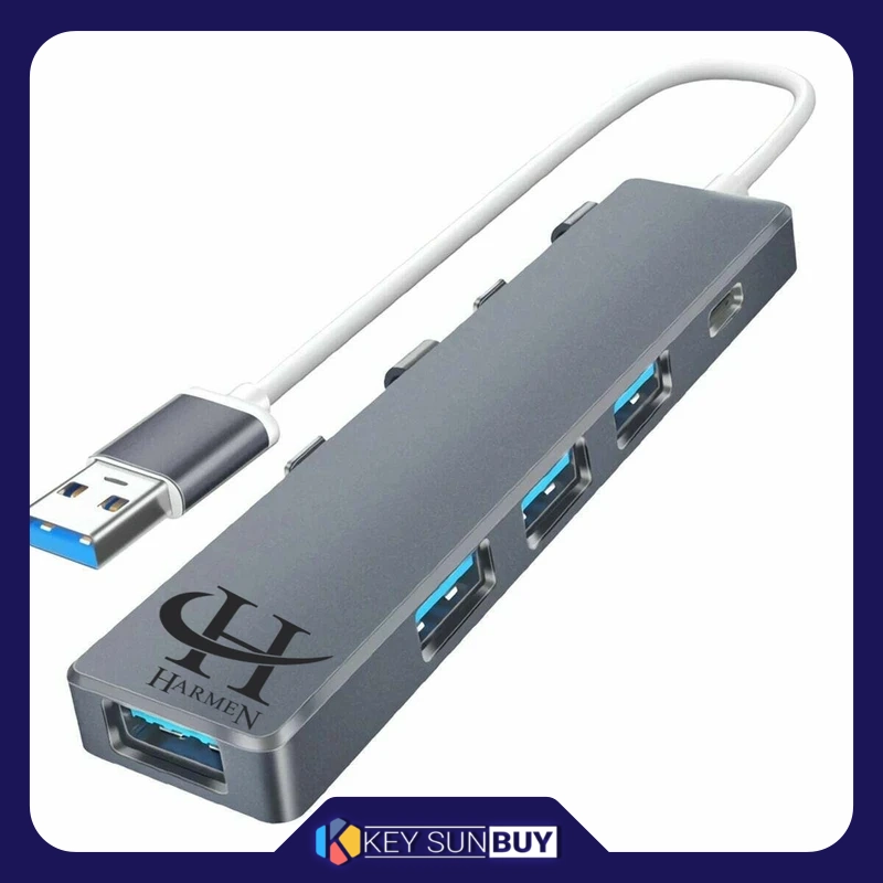 هاب HARMEN مدل HR-USB3000 یکی از با کیفیت ترین و پروفروشترین و ارزانترین هاب ها نسبت به مدل های مشابه میباشد که دارای یک پورت USB3.0 واقعی و 3 پورت USB 2.0 میباشد و یک درگاه تایپ سی TYPE-C که میتوانید شارژر گوشی موبایل و یا تبلت خود را برای دستگاه هایی که نیازی به ولتاژ بالا دارند متصل کنید این هاب در حالت عادی هیچ نیازی به اداپتور ندارد و میتوانید بدون نیاز به اداپتور از آن استفاده کنید یک IC کنترلر پیشرفته بر روی مادربرد هاب میباشد که مانع از آسیب به پورت ها و یا دستگاه های متصل به هاب بر اثر نوسانات برق و یا اتصالی پورت و یا دستگاه متصل میباشد و مزیت این هاب نسبت به هاب های دیگر این است که بر اثر استفاده به پاور لپ تاپ شما آسیب نمیزند جنس بدنه هاب از فلز بوده و دارای یک رابط با کابل 20 سانتی متری میباشد که هنگام حمل آن میتوانید کابل را به گیر های تعبیه شده در کنار هاب متصل کنید که آسیبی به کابل هاب وارد نشود این هاب در دو رنگ مشکی و سفید تولید شده و سازگاری با تمامی سیستم عامل های ویندوز و لینوکس و مکینتاش را دارد و میتوانید با استفاده از HUB هارمن مدل HR-USB3000 چهارپورت دیگر به کامپیوتر و لپ تاپ خود اضافه کنید سرعت انتقال داده 500MB/s با درگاه یو اس بی 3.0 آن میباشد هرچند بایستی از کارت های حافظه و یا هارد های اصلی و با کیفیت استفاده کنید و لپ تاپ شما هم بایستی دارای درگاه USB3.0 باشد