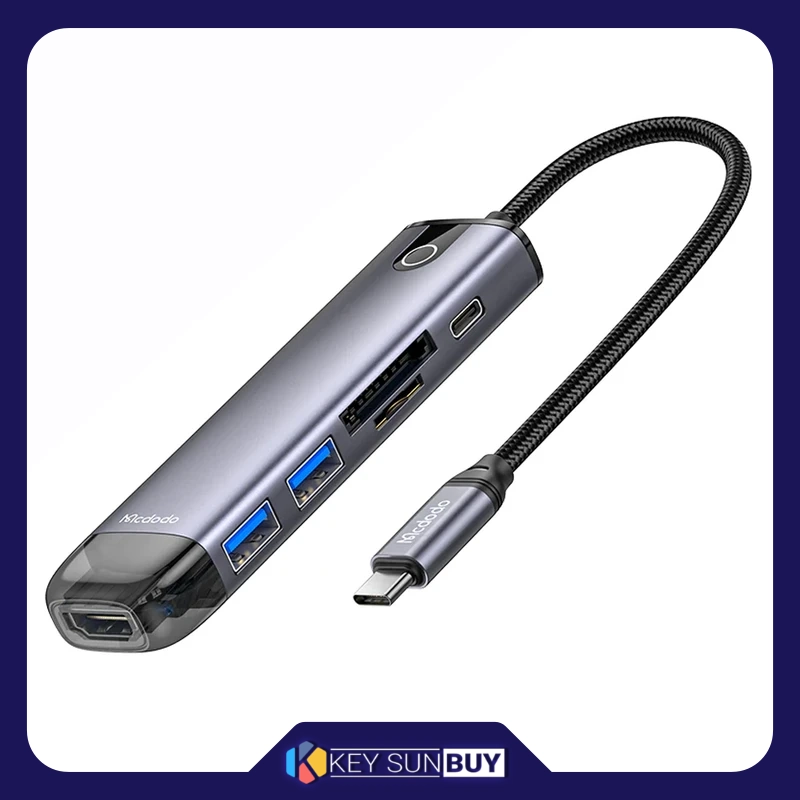 هاب 6 پورت USB-C مک دودو مدل HU-7740 چند کاره مک دودو دارای کانکتور USB-C بوده و قابلیت شارژ گوشی، انتقال داده و اتصال کارت SD را دارا می باشد.ابعاد هاب چند کاره Mcdodo HU-7740; برابر با 1.85×4.2×30 سانتی متر بوده و 90 گرم می باشد. بدنه آن از آلیاژ آلومینیوم و طول کابل آن 15 سانتی متر است.در اطراف بدنه این هاب 6 پورت متفاوت قرار گرفته که امکان شارژ با USB (2PORT) ،اتصال HDMI 4K (3840×2160)و کارت حافظهSD/MicroSD را به کاربر می دهد.به کمک Type-c کاربر می تواند لپ تاپ یا هر وسیله دیگری را شارژ کند. حداکثر توان قابل انتقال به وسیله پورت PD برابر با 100 وات است.پورت تایپ سی این هاب فقط قابلیت شارژ دارد و برای انتقال اطلاعات نمی باشد.هاب مک دودو می تواند به درگاه تایپ سی لپ تاپ ها، تبلت ها و همینطور گوشی ها متصل شود و از سیستم های ویندور، Mac OS ، iPad OS و اندروید پشتیبانی می کند.فهرستی از موبایل و تبلت و لپ تاپ هایی که از قابلیت انتقال تصویر بوسیله پورت تایپ سی به HDMI پشتیبانی میکنند در تصاویر محصول موجود است.(USB3.1 و بالاتر)