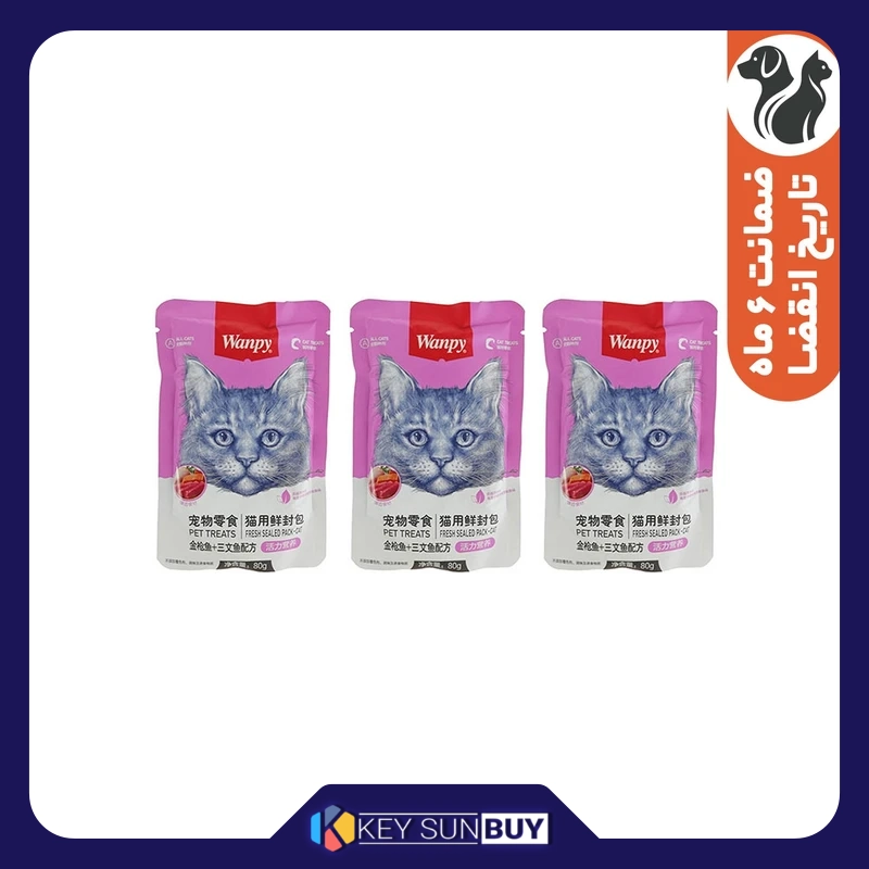 بهترین قیمت پوچگربه ونپی مدل ماهی تن و سالمون وزن 240 گرم بسته 3 عددی ارسال سراسر ایران