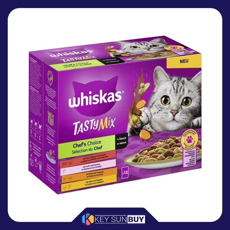 بهترین قیمت پوچ گربه بالغ ویسکاس مدل گروی طعم ماهی، مرغ، بوقلمون، گوشت گاو وزن 85 گرم بسته 12 عددی ارسال سراسر ایران