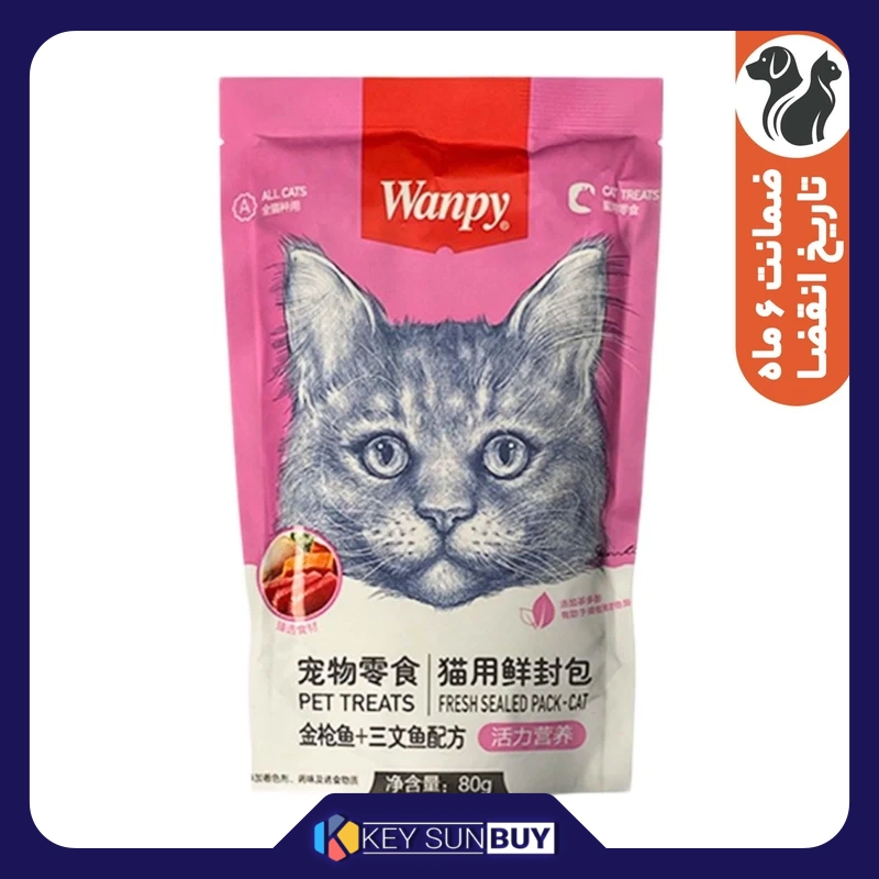 بهترین قیمت پوچ گربه ونپی مدل ماهی سالمون و ماهی تن وزن 800 گرم بسته 10 عددی ارسال سراسر ایران