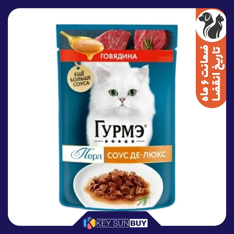 بهترین قیمت پوچ گربه گورمت مدل Perle دوبل طعم گوشت گاو وزن 75 گرم ارسال سراسر ایران