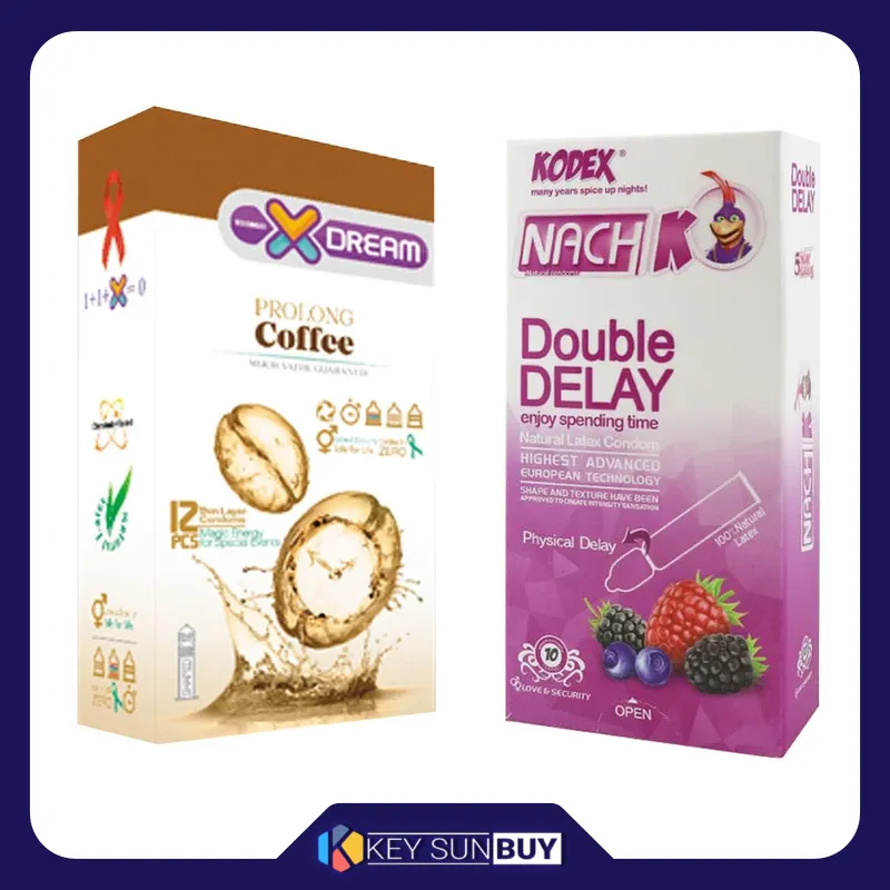 بهترین قیمت کاندوم ایکس دریم مدل Coffee بسته 12 عددی به همراه کاندوم تاخیری کدکس مدل Double Delay بسته 10 عددی ارسال سراسر ایران