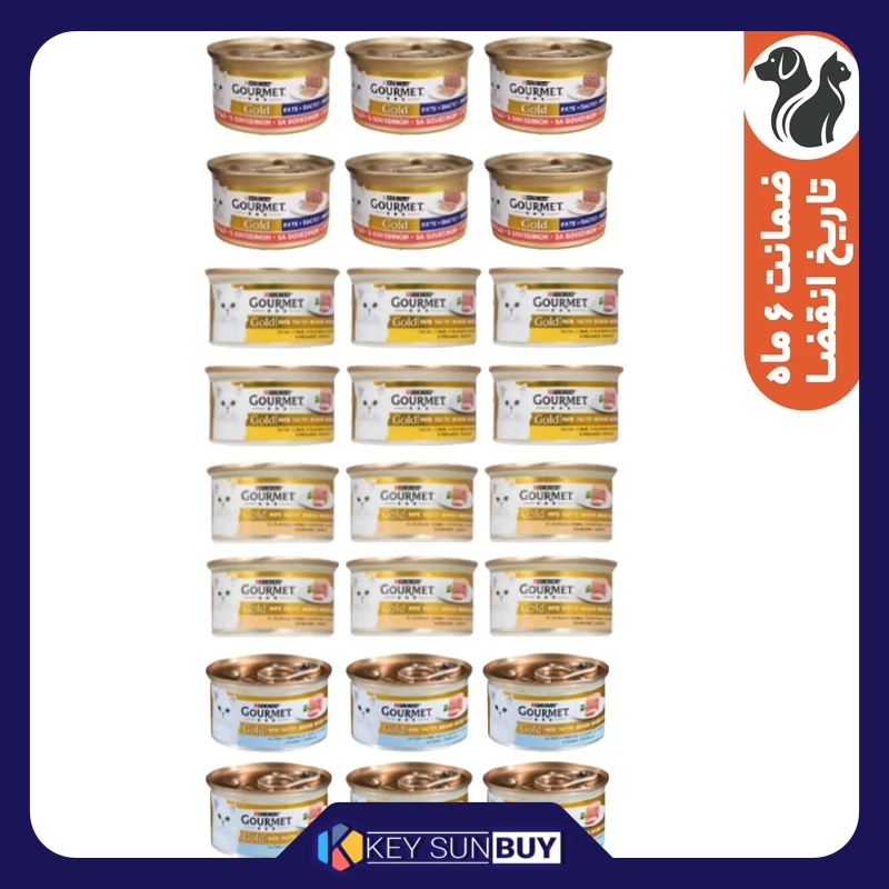 - بهترین قیمت کنسرو غذای گربه بالغ گورمت مدل Gourmet Gold Mix با طعم ماهی،مرغ، بوقلمون و گوشت گاو بسته 24 عددی ارسال سراسر ایران