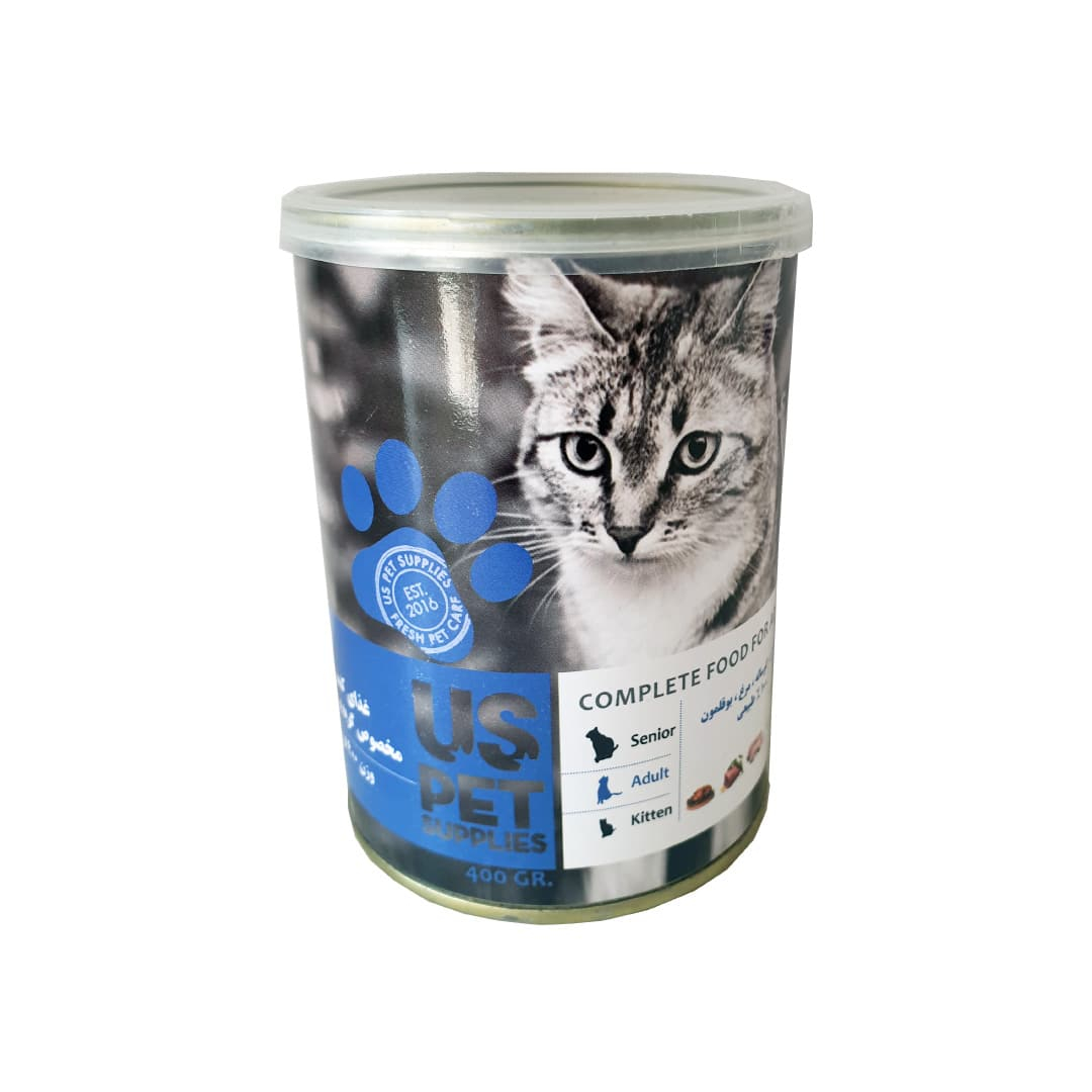 بهترین قیمت کنسرو یو اس پت گربه مدل گوساله، مرغ، بوقلمون وزن 400 گرم ارسال سراسر ایران