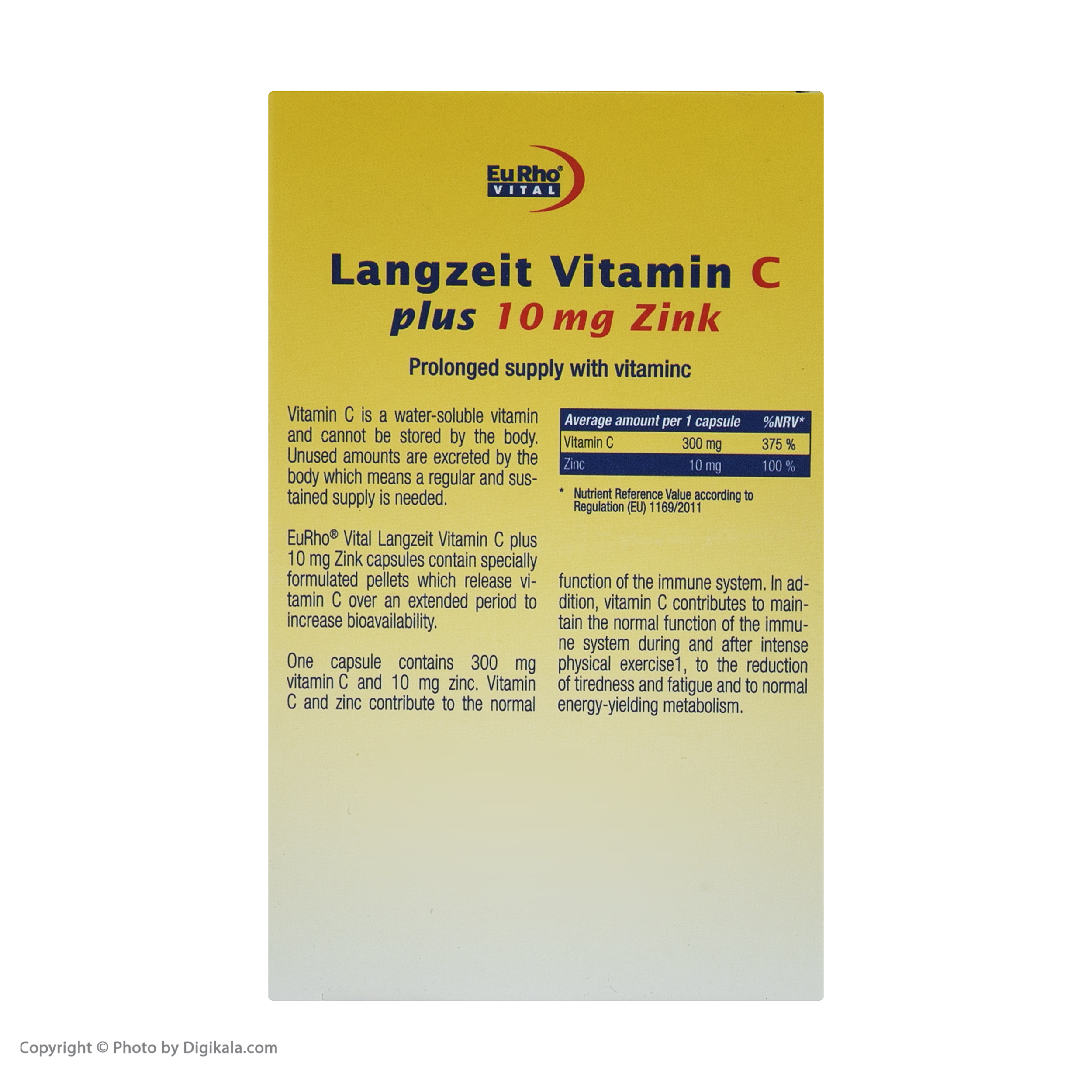 کپسول ویتامین ث و زینک 10 میلی گرمی یوروویتال بسته 60 عددی