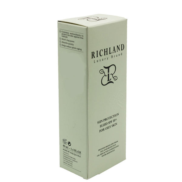 فلوئید ضد آفتاب ریچلند برای پوست چرب ساخته شده است و در کنترل ترشح چربی و سبوم پوست موثر است. این محصول اشعه UVA را بازتاب میکند و با جلوگیری از ورود آن به پوست، روند پیری پوست و ایجاد چین و چروک را به تعویق میاندازد. همچنین اشعه پرانرژیتر UVB را به اشعه مادون قرمز (گرما) تبدیل میکند تا اثر کمتری روی پوست داشته باشد.