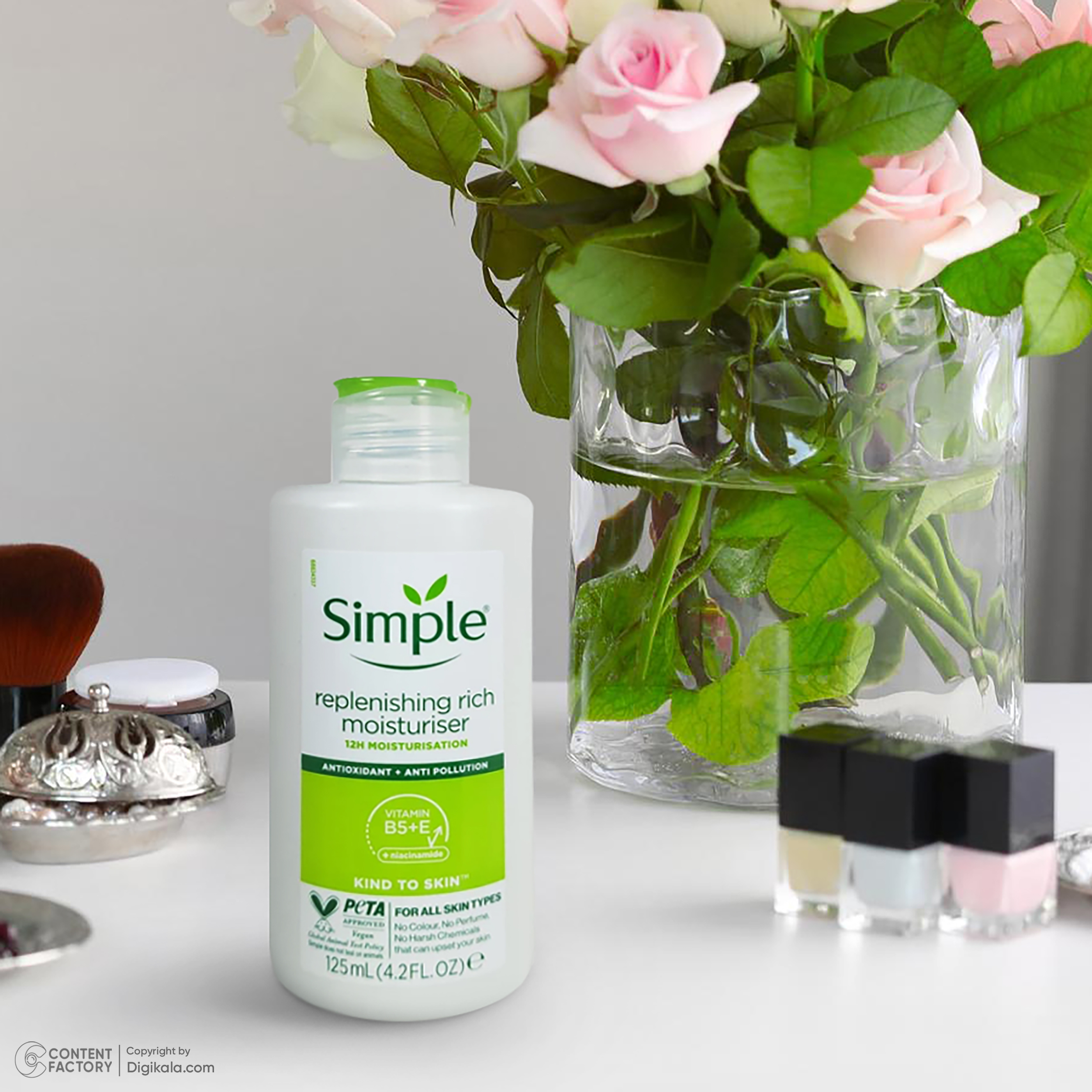 این کرم بدون رایحه بوده و سازگار با انواع پوست است. افرادی با پوستهای حساس نیز میتوانند با خیالی آسوده از این محصول استفاده کنند. کرم آبرسان سیمپل مدل Rich با ترکیبات خاص و بدون الکل و پارابن، به همراه ویتامینهای E و B5 تولید شده است. ویتامین E بهعنوان یک آنتیاکسیدان قوی، به محافظت از پوست در برابر آسیبهای محیطی کمک میکند و ویتامین B5 نیز با خاصیت مرطوبکنندگی قوی، به نرمی و لطافت پوست کمک میکند.