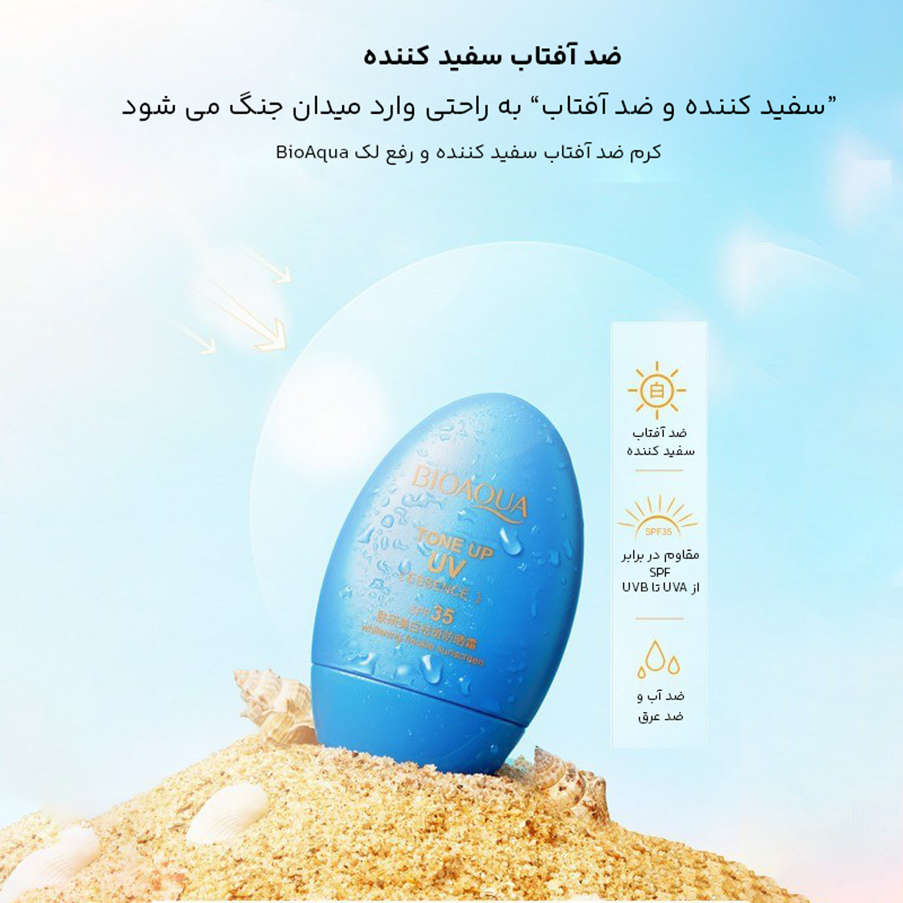 مراقبت پوست کرم ضد آفتاب بدون رنگ بایو آکوا SPF35 مدل Tone Up UV محافظ UVA ،UVB، ضد لک، روشنکننده، مناسب انواع پوست حجم 30 میلیلیتر