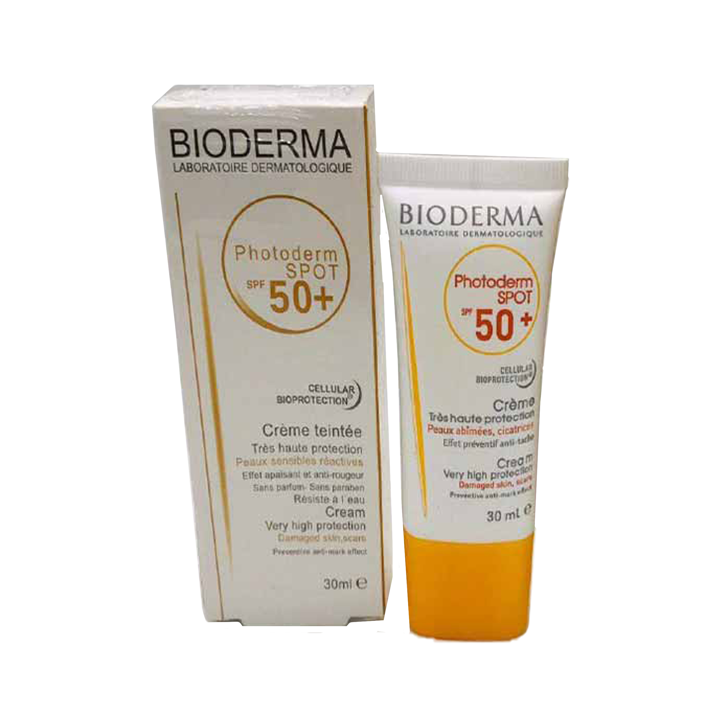 ضد آفتاب فتودرم اسپات بایودرما SPF50 حاوی آووبنزونو تینوسرباس و تینوسربام است. به سبب وجود این ترکیبات،این محصول یک ضد آفتاب با طیف وسیع بوده و از نفوذ اشعههای مضر خورشید به پوست محافظت میکند. این محصول ادعای ضد لک بودن و روشن کنندگی پوست را دارد. ترکیبات منحصر به آن پوست شما را بسیار نرم و دلپذیر می کند. کاملا بی رنگ است و پس از استفاده روی پوست اثر سفیدی یا چربی روی پوست باقی نمیگذارد. این محصول برای پوستهای حساس و یا پوستی که زخم، جای لک و جوش دارد نیز مناسب است.ضد آفتاب اسپات بیودرما حاوی فیلترهای قوی در برابر اشعههای مضر خورشید بوده که محافظت از پوست شما را تضمین میکند. همچنین برای جلوگیری و کمرنگ کردن لکهای پوستی تمرکز میکند. البته اکثر کرمهای ضد آفتاب به سبب جلوگیری از نفوذ عامل ایجاد لک به طور طبیعی از ایجاد لک جلوگیری میکنند. اما این محصول بایودرما یک گام فراتر نهاده است. عنصری به نام گلابریدین در ترکیبات این ضد آفتاب وجود دارد که از عصاره شیرین بیان حاصل میشود و بهعنوان تنها مادهای که میتواند از تغییر رنگ پوست جلوگیری کند شناخته میشود. در واقع گلابریدیدن خاصیت ضد التهابی بالایی دارد، بنابراین میتواند تغییر رنگ پوست ایجاد شده در اثر اشعه فرابنفش UVA را کاهش دهد. بنابراین ضد آفتاب فتودرم اسپات بایودرما با استفاده از ترکیبات انحصاری ریسک ابتلا به لک را به حداقل میرساند و پوست ضعیف شما را التیام میبخشد.ضد آفتاب فتودرم اسپات بایودرما ( bioderma photoderm spot ) به دلیل ترکیبات ضد لک ، برای پوست های دارای لک ، کک و مک و همچنین بعد از لیزر تراپی و اقدامات درماتولوژیکی که منحر به خراش شده حفاظتی مطلوب و انتخابی مناسب است . ترکیبات این ضد آفتاب طوری است که پس از استفاده روی پوست کاملا بی رنگ است و سفیدی یا چربی رو پوست باقی نمی گذارد . فاقد عطر بوده و در برابر تعریق مقاوم است. به دلیل کمپلکس bioprotection در این ضد آفتاب محافظتی عمقی از سلول های شما صورت می گیرد .