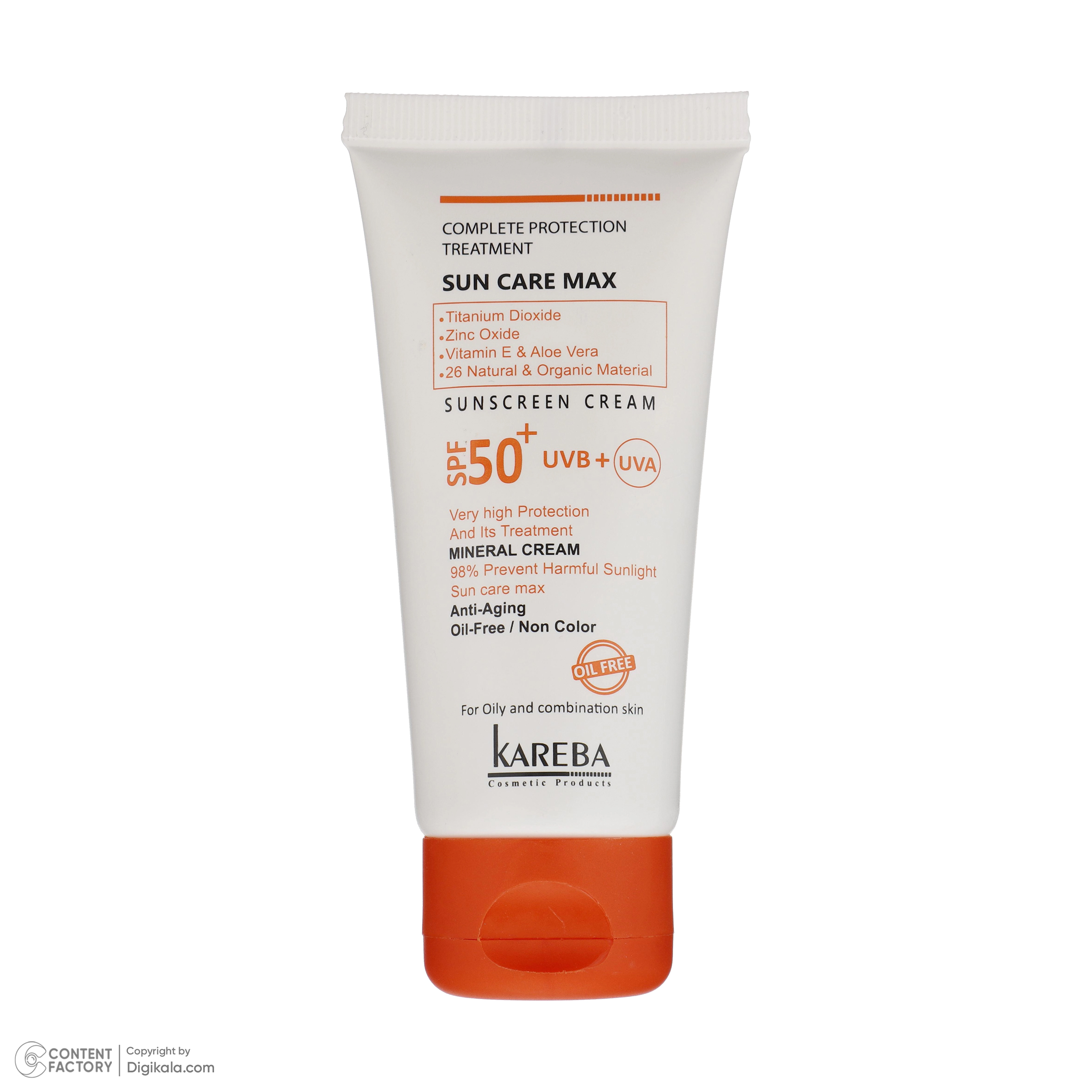 کرم ضد آفتاب مینرال بی رنگ مناسب پوست مختلط و چرب Kareba، فاقد چربی و دارای خاصیت ضد پیری و ضد چروک میباشد. این کرم ضد آفتاب حاوی ویتامین E و عصاره آلوئهورا است که از ایجاد چروک روی پوست جلوگیری میکند. وجود زینک اکساید و تیتانیوم اکساید سبب شده تا این کرم قابلیت مینرال داشته باشد و به خوبی تا 98% از تاثیرات مخرب نور خورشید را خنثی کند. استفاده از کرم ضد آفتاب کاربا علاوه بر محافظت از پوست در مقابل اشعههای UVA-UVB، دارای خواص مینرال و ضد چروک است که این قابلیتها سبب شده تا انتخاب مناسبی برای استفاده در تمام سال باشد.