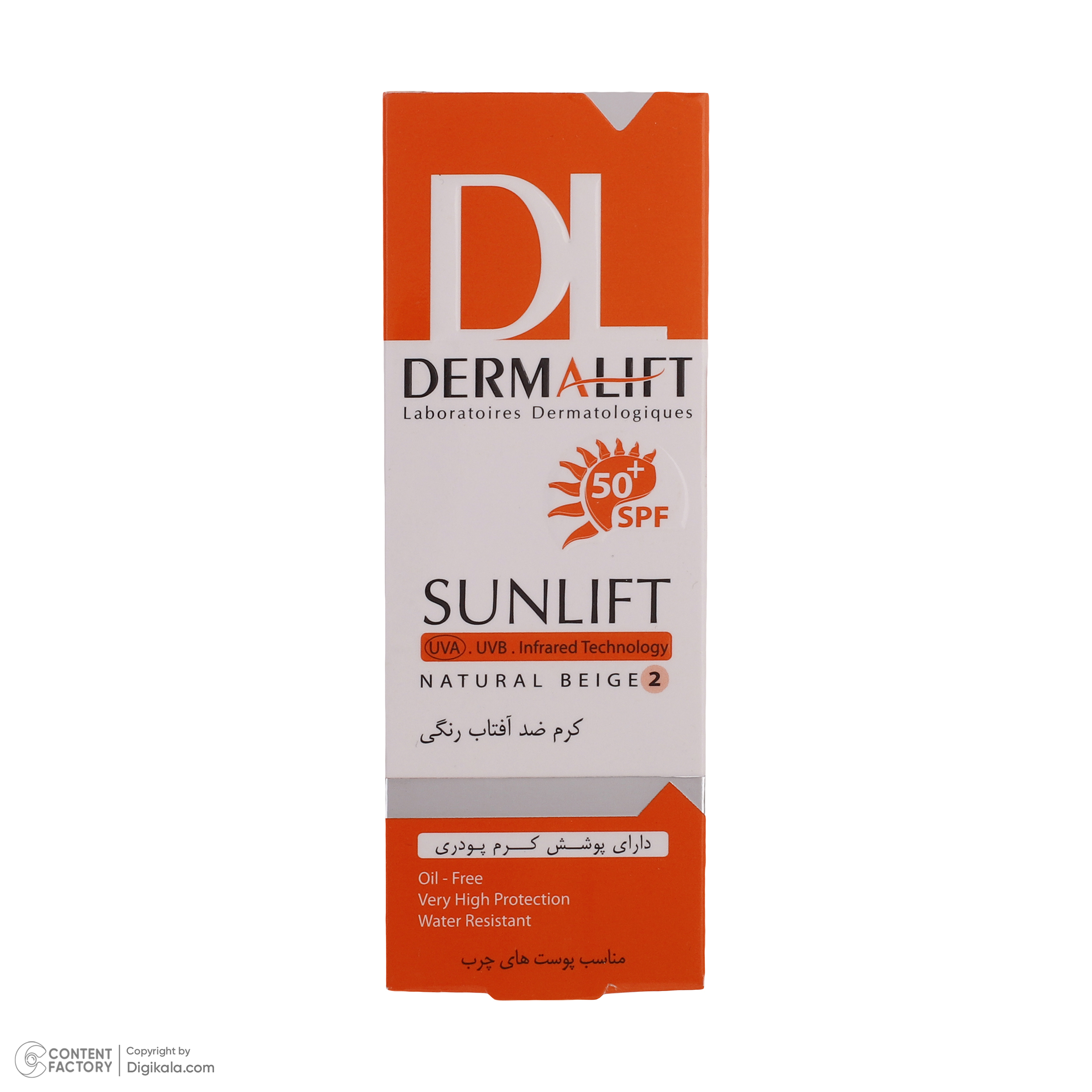 کرم ضد آفتاب رنگی درمالیفت مدل SPF50 مناسب پوستهای چرب حجم 40 میلیلیتر
