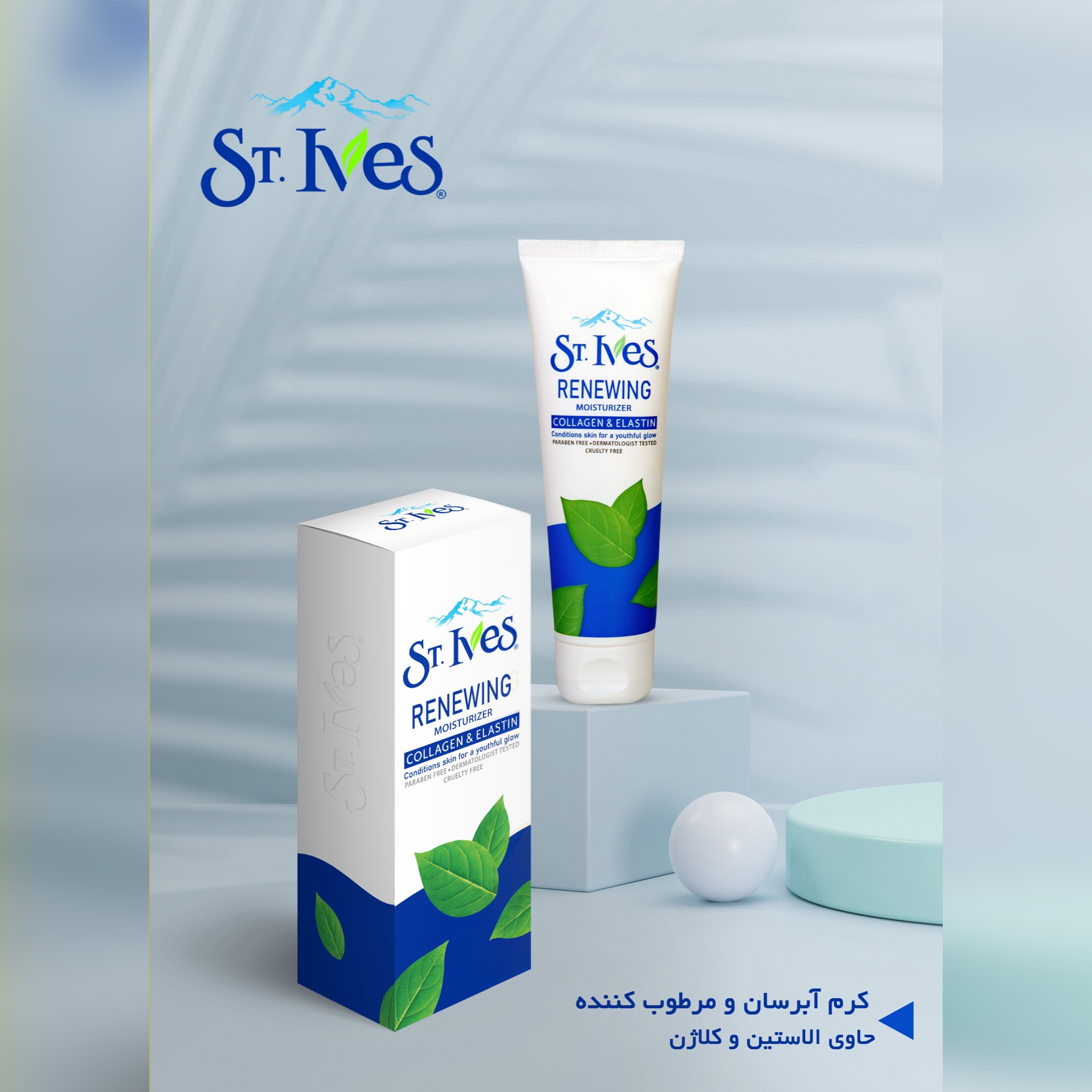 این محصول کرم مرطوب کننده از برند سنت ایوز ST.Ives که از سری RENEWING رنووینگ (تجدید کننده) بوده که یک کرم آبرسان موثر و مرطوب کننده برای انواع پوست به ویژه پوستهای خشک است. این محصول بدون آنکه پوست را چرب کند، رطوبت کافی را به آن می رساند. کرم سنت ایوز ST.Ives حاوی کلاژن است که باعث سفت شدن پوست شده و پروتئین الاستین آن باعث کاهش چروک می شودو ظاهر پوست را جوانتر می کند.