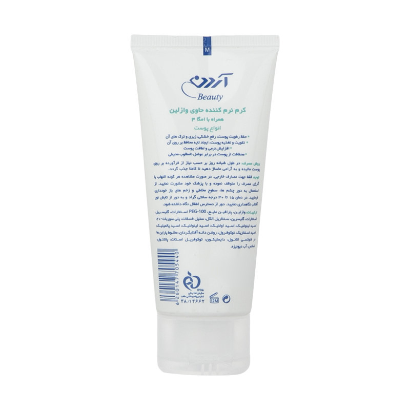 کرم نرم کننده آردن بیوتی حاوی وازلین و امگا 3 مدل Softline یک مرطوب کننده و ترمیم کننده قوی برای انواع پوست است و پس از مصرف به سرعت جذب پوست می شود. این کرم حاوی وازلین و امگا 3، ویتامین E ,F و دپنتنول است که این ترکیبات موجب حفظ رطوبت و تغذیه پوست می شوند و بعد از یک دوره استفاده خشکی، زیری و ترک های پوستتان را بهبود می بخشند. این محصول با تقویت سد دفاعی پوستتان در برابر عوامل محیطی مانند گرما، سرما، خشکی یا آلودگی هوا، از آن محافظت می کند.